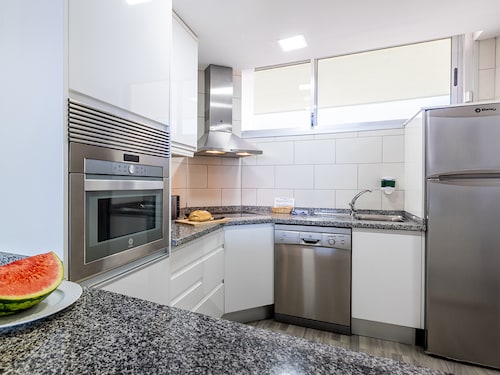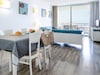 - Équipements dans la cuisine : Coin cuisine équipée ouvert sur le séjour : lave-vaisselle, frigo, mixeur, four micro-ondes, plaques vitro ainsi que toute la vaisselle et ustensiles nécessaires.
