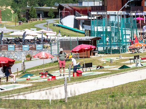 Enjoy the warm atmosphere of the pedestrianised Belle Plagne resort when you stay at the Emeraude residence! Surrounded by forests, mountain pastures and glaciers, it is within easy reach of the resort's Deep Nature® spa, numerous activities and shops.
